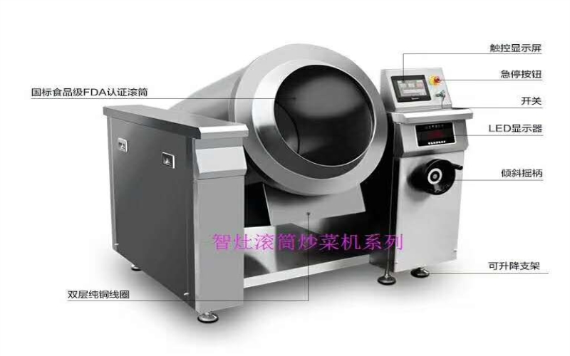 - 自動炒菜機由爐架、滾筒桶身、電磁感應(yīng)加熱系統(tǒng)組成;- 結(jié)構(gòu)合理,外形美觀,具有自動翻炒和傾斜出鍋兩大特點;- 機械自動翻炒,攪拌均勻,不僅僅提高生產(chǎn)率、降低能耗,而且還節(jié)省能源;- 鍋體沿水平軸旋轉(zhuǎn),由鍋里的攪拌叉波動菜肴作刮上拋下的運動;- 機械自動翻炒,可通過變頻器調(diào)速,提高翻炒速度;- 鍋的內(nèi)表面涂有鐵氟龍不沾涂層,便于清洗和使用;- 廣泛適用于餐飲、機關(guān)、部隊、學(xué)校、廠礦等單位;- 本自動炒菜機成為炒鍋類設(shè)備的更新?lián)Q代的新產(chǎn)品;